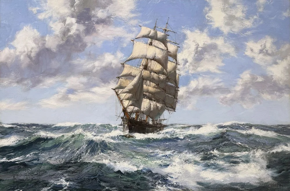 Titled and inscribed on the stretcher: “BOWLING ALONG” THE “BROWN BROTHERS” 1492 TONS BUILT IN 1876 IN NEWBURYPORT