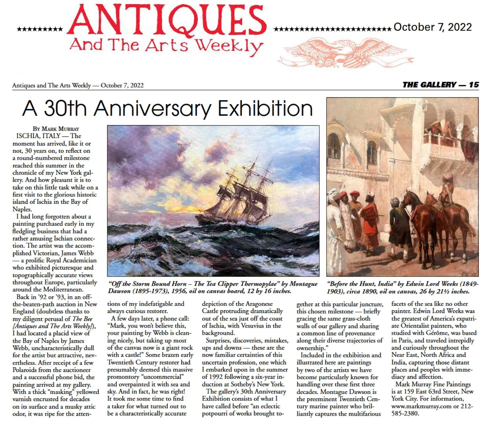 A 30th Anniversary Exhibition October 7, 2022 Christi Scofield “A 30th Anniversary Exhibition” - An article by Mark Murray in Antiques and The Arts Weekly, October 2022 View the Collection of MONTAGUE DAWSON Paintings at Mark Murray Gallery